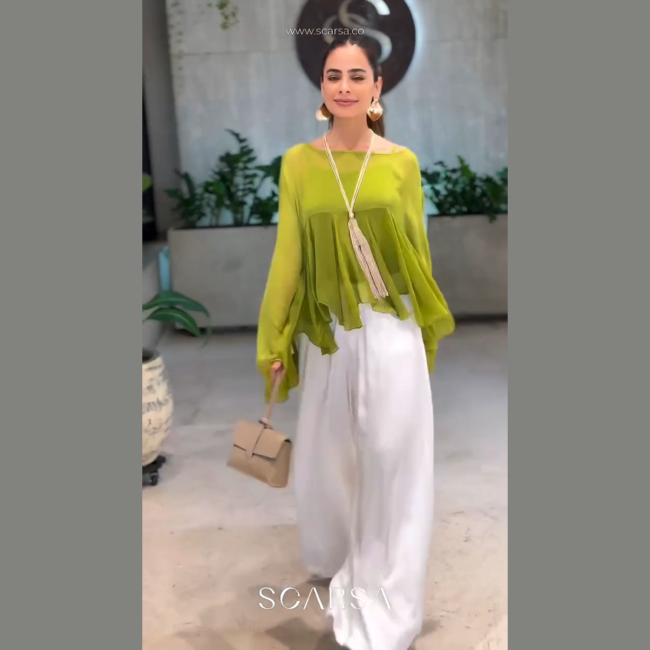 Tejido ligero y semitransparente, perfecto para un look fresco y sofisticado.