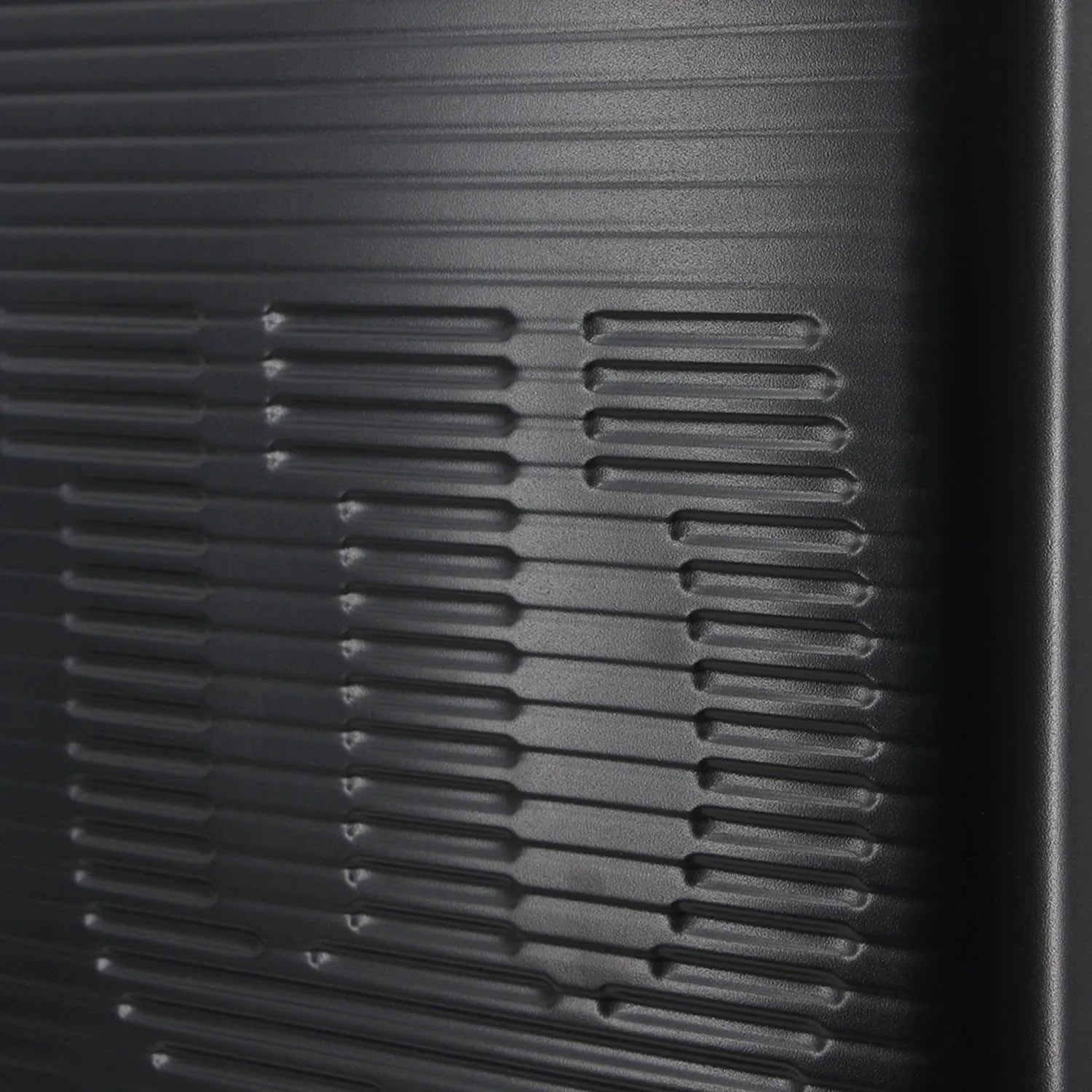 Superficie rígida en ABS negro, elegante y resistente