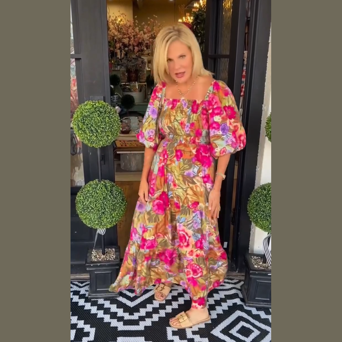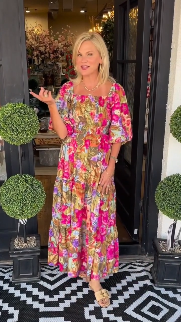 Cada día merece un toque de color y estilo, y este vestido largo de flores se convierte en tu aliado perfecto para sentirte femenina y segura. Su diseño fluido y alegre transmite vitalidad, mientras que sus mangas abullonadas aportan un encanto romántico irresistible.