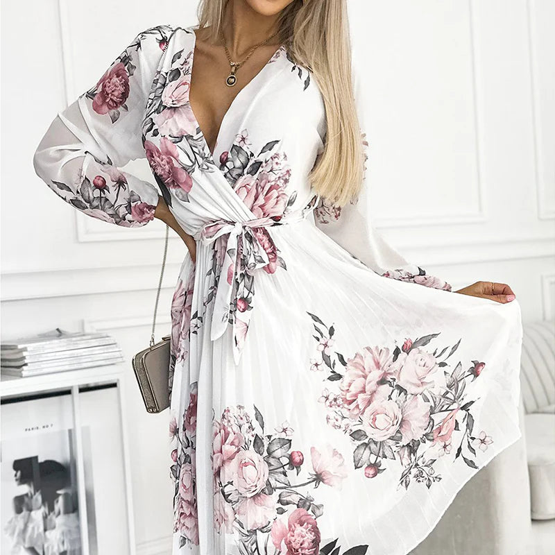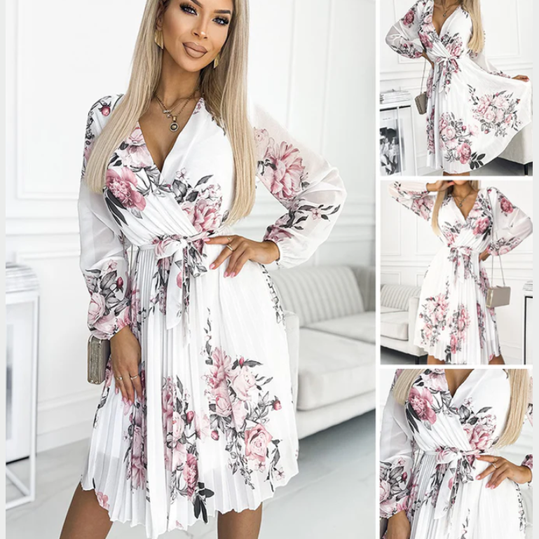 Hay prendas que no solo vistes,te envuelven en una sensación. Este vestido floral de corte midi no es solo bonito: es una caricia para el alma. Diseñado para realzar tu figura con suavidad, se mueve contigo y aporta una elegancia natural que no necesita esfuerzo.